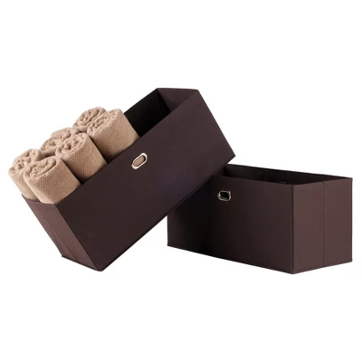 Declutter your shelves and make them look neat and organized with the Torino 2-Piece Folding Fabric Basket Set from Winsome. Made from durable material, these foldable fabric baskets provide a lightweight storage solution to your varied storage needs. Store everything from sweaters, shoes, and towels to toys and games in these foldable baskets. Featuring two reinforced chrome handles for easy carrying, these folding fabric baskets easily fit in any storage cubby or closet, helping you organize and declutter your home. Open size 233″W x 10.2″D x 10.2″H.