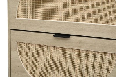 - Stylish shoe rack storage cabinet featuring rattan and mirror doors
