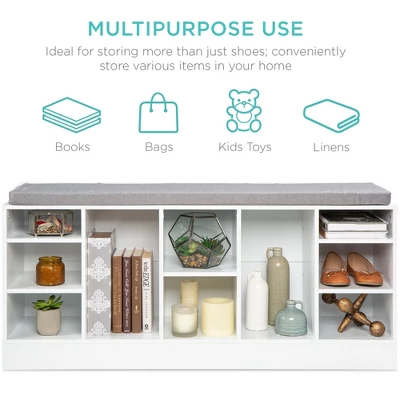 Best Choice Products 46in Shoe Storage Organization Rack Bench For Entryway, Bedroom W/ Padded Seat, 10 Cubbies – White