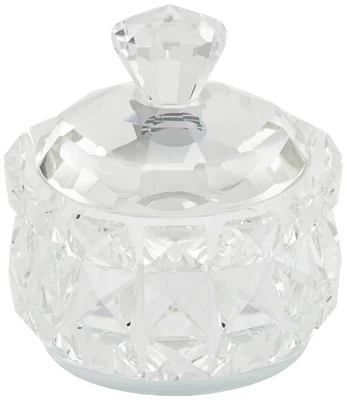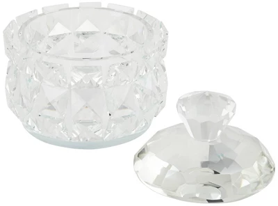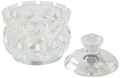 Dress up a vanity table with a glittering touch of glam and glitz. This set of two hand-polished, clear glass jewelry boxes flaunts a luxurious diamond motif that shimmers and shines in the light. Stash away jewelry and small accessories in these effortlessly elegant boxes from the Seely collection.