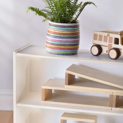 Guidecraft’s EdQ collection satisfies practical storage and organizational needs in classrooms, homeschool environments and kids’ play areas. The versatile, attractive furniture pieces in this complete collection provide opportunities for various easy configurations in any spaces where children learn and play. Keep kids’ toys, books, art supplies, stuffed animals and learning materials organized and accessible with the EdQ 3-Shelf Open Storage 36″. This spacious storage unit features three wide shelves and a finished back panel that prevents objects from getting lost and allows for multiple room arrangement options.