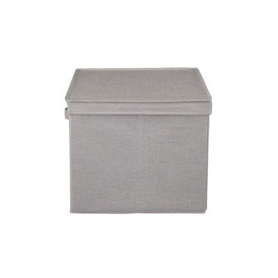 This set of 2 stylish Wide Storage Boxes with Lids from Household Essentials provide limitless organizational functionality. Their timeless design creates an aesthetically pleasing alternative for plastic totes or old shoebox makeshift storage solutions designed to hide clutter. Ideal in any home storage application, these boxes are perfect for bedrooms (sheets, pillow cases), bathrooms (towels, washcloths, toiletries), attics (collectibles, antiques), home offices (office supplies, craft supplies), or anywhere else clutter tends to collect. The storage boxes are made of a poly-blend linen and is reinforced with solid siding for added stability, durability, and stackability. Each box features a single decorative handle for easy, one-handed access at all times. These wide storage boxes blend neatly with any home decor and certainly don’t have to be relegated to out-of-sight areas. When not in use, the box folds flat and can be tucked away easily without taking up valuable excess space. Attractive and functional, these Wide Storage Boxes with Lid are the perfect solution for your home’s organizational challenges.