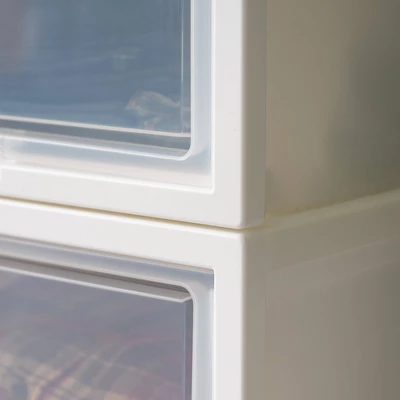 Create storage where you need it most with this set of three modular stacking drawer units from IRIS. Clear front panel lets you see inside at a glance, Open and close with slinding door for easy access in tiny space. Designed to stack securely, you can fit multiple units together to build customized storage any way you want it.
