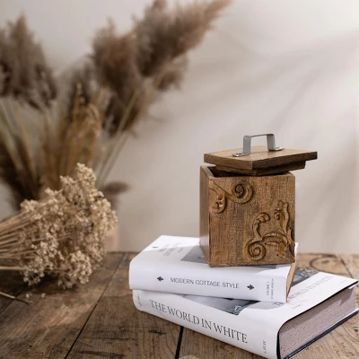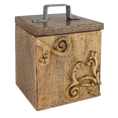 Scroll Carved Trinket Box Mango Wood & Metal – Foreside Home & Garden