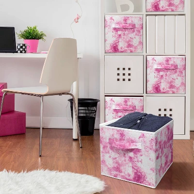 - FOLDABLE STORAGE CUBE (Tie-Dye Pink) — Foldable basket set provides attractive, lightweight solutions to many storage needs while keeping household items tidy and organized