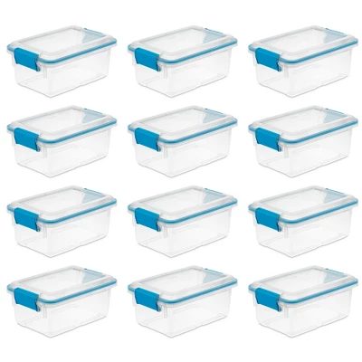 Need help getting organized? These Sterilite 7.5-Quart Clear Storage Containers will help you with your moving or storage needs. This package includes 6 storage bins and lids.These durable storage totes feature a 7.5-quart capacity and are an ideal solution for keepsakes, photographs, important documents, linens, clothing, and other items that need to be stored away and protected. The latching lid attaches to the base to ensure your belongings stay safe and secure during a move or while in storage. The gasket seals both air and moisture, keeping those special belongings safe from the elements, dust, and pests. Durable, tight-fitting latches keep the lid secured to the base, and the clear lid and base allow contents to be easily identified, without opening the lid.Quality is key when it comes to choosing storage materials. That’s why these Sterilite 7.5-Quart Clear Storage Containers are crafted from durable plastic to keep your possessions protected.
