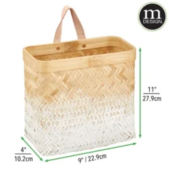 MDesign Woven Ombre Bamboo Hanging Wall Storage Organizer Basket, Natural/White