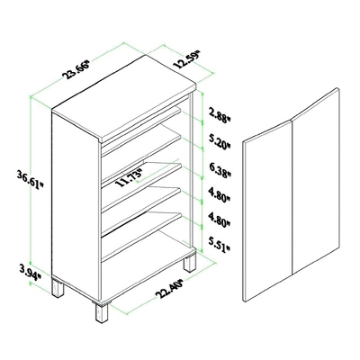 - Overall Dimensions: 40.40″ High x 23.60″ Wide x 12.60″ Deep; Storage Dimensions: 5.00″ High x 22.40″ Wide x 11.70″ Deep; Legs: 3.90″ High;