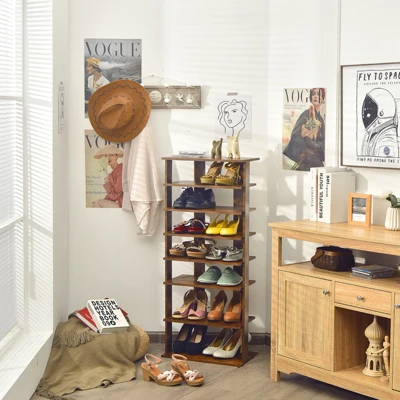 Tangkula 7-Tier Shoe Rack Free Standing Shelf Storage Modern Shoe Rack Organizer Brown/Black/White