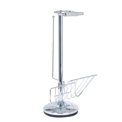 The perfect caddy to make sure you have everything within reach when you need it! The Toilet Caddy is the ultimate toilet tissue dispenser and organizer that easily installs within minutes. The spacious storage rack perfectly holds your tablet or magazines and storage for three additional tissue rolls; never run out again! The raised base ensures that toilet paper rolls star off bathroom floors to remain clean and ready to use. It features a heavy base to provide stability, and to prevent tipping when pulling your paper roll! The Toilet Caddy is crafted from durable, high quality plated steel in either chrome or satin nickel finishes
