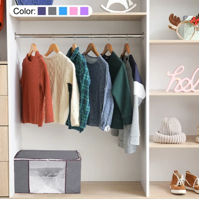 Why Choose Clothes Storage Bags Large Capacity Clothes Storage Bins Foldable Closet Organizers?Made of three-ply material, sturdy and durable, and odorless, protect your clothes from dust and moisture.A see-through window in the front allows you to quickly see what is stored inside the totes for storage.Lightweight, portable, and foldable storage bags allow them to be easily stored to save space when not in use.A two-way zipper allows it to easily slide along the closure when in use, preventing dust from entering, and keeping your clothes neat and tidy.And stainless steel zippers are durable and can be used for a longer period of time.The reinforced handle with two layers of thick fabric to prevent tearing.The handle seams for added strength for easy portability and transport.A clothing storage bag is suitable for storing your Comforters, blankets, jackets, or other clothes for changing seasons.Keep items organized while ensuring that they are away from dust and dirt.Keep dust and moisture out.Two side handles to make it convenient to be carried from one place to another.Each collapsible storage bag comes with a dedicated clear window that allows you to view its contents in a minute.In addition, the collapsible Foldable design makes it easy to store when not in use.Made of Non-Woven Fabrics which is gentle on your clothes, Comforters, and blankets.Package included 2 pcs.Please allow 1-3cm deviation due to manual measurement.Actual color may be slightly different from the image due to different monitor and light effects.