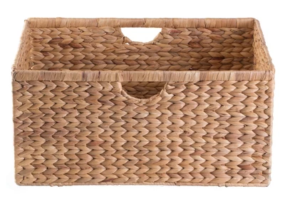 Organize, store, and and decorate with this water hyacinth basket. Designed to hold books, towels, or various household items this basket allows you to organize and add a natural look to your closet or counter display. Natural water hyacinth composition invites rustic charm in any room placed and foldable options allows you to easily store when using. For a rustic themed coffee shop, closet organization, or countertop decoration this basket makes rustic decor proud.