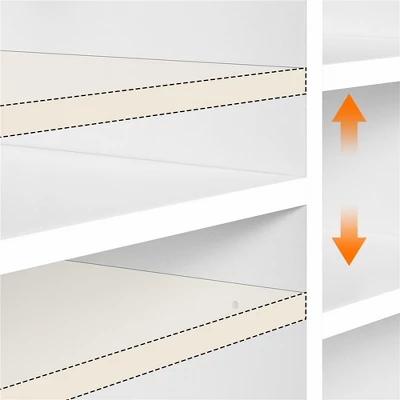 - Adjustable Shelves: The left side shelf and right side shelf are adjustable for 3 positions, which makes them flexible for storing and organizing. You can change the heights of the shelves or remove them according to the actual sizes of the shoes.
